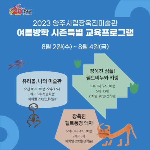 ±âŸ ÇÁ·Î±×·¥°ú À̺¥Æ®¿¡ °üÇÑ ³»¿ëÀº ¹Ì¼ú°ü ȨÆäÀÌÁö(http://www.yangju.go.kr/changucchin/index.do)¿¡¼ È®ÀÎÇÏ¸é µÈ´Ù.