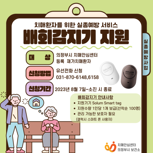 ÀÇÁ¤ºÎ½Ã º¸°Ç¼Ò(¼ÒÀå À忬±¹) Ä¡¸Å¾È½É¼¾ÅÍ´Â Ä¡¸ÅȯÀÚ ½ÇÁ¾¿¹¹æ»ç¾÷ÀÇ ÀÏȯÀ¸·Î 8¿ùºÎÅÍ ¹èȸ Áõ»óÀ¸·Î ½ÇÁ¾ À§ÇèÀÌ ÀÖ´Â Àç°¡ Ä¡¸Å¾î¸£½Å 100¸í¿¡°Ô ¹èȸ°¨Áö±â¸¦ ¹«»óÁö¿øÇÑ´Ù.