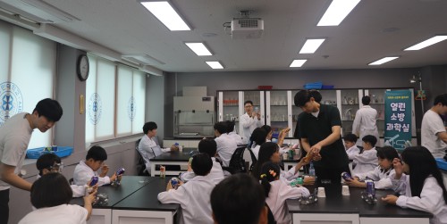 À̹ø ¼Ò¹æ°úÇнÇÀº ÀÇÁ¤ºÎ¼Ò¹æ¼ Á÷¿ø ÀÚ³àµé°ú ÇÔ²² °úÇÐÀ̷аú ¼Ò¹æ¾ÈÀüÀ» ¿¬°è½ÃŲ ½ÇÇèÀ» ÅëÇØ, Çлýµé¿¡°Ô Áö·çÇÏ°í ¾î·Á¿î °úÇÐÀ» Áñ°Ì°Ô °øºÎÇÏ¸é¼ ÈÀç¿¡ ´ëÇÑ ¾ÈÀüÀǽĵµ ÇÔ¾ç½Ã۱â À§ÇÏ¿© ¸¶·ÃµÇ¾ú´Ù.
