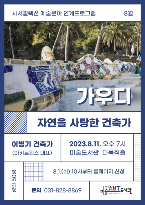 ¿¹¼ú ºÐ¾ß´Â ‘°ÇÃàÀº ¿¹¼úÀÌ´Ù’¸¦ ÁÖÁ¦·Î µµ¼¸¦ Àü½ÃÇØ âÀÇÀûÀÎ °ÇÃà°¡¿Í ±×µéÀÇ °ÇÃ๰À» ¼Ò°³Çϰí, 8¿ù 11ÀÏ ¿ÀÈÄ 7½ÃºÎÅÍ À̺´±â °ÇÃà°¡ÀÇ °¿¬ ‘°¡¿ìµð, ÀÚ¿¬À» »ç¶ûÇÑ °ÇÃà°¡’¸¦ ÁøÇàÇÑ´Ù. µ¶Ã¢Àû ¼¼°è¸¦ ±¸ÃàÇÑ ¾ÈÅä´Ï °¡¿ìµðÀÇ °ÇÃ༼°è¸¦ ¸¸³ª°í, 20¼¼±â °ÇÃàÀÇ È帧À» ÀÔüÀûÀ¸·Î »ìÆìº»´Ù.