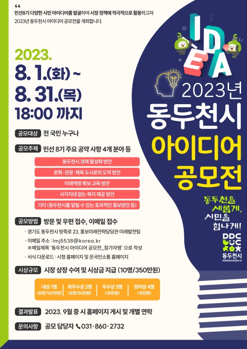 µ¿µÎõ½Ã(½ÃÀå ¹ÚÇü´ö)´Â ´Ù¾çÇÑ ½Ã¹Î ¾ÆÀ̵ð¾î¸¦ ¹ß±¼ÇÏ¿© ½ÃÁ¤Á¤Ã¥¿¡ Àû±Ø Ȱ¿ëÇϱâ À§ÇØ '2023³â µ¿µÎõ½Ã ¾ÆÀ̵ð¾î °ø¸ðÀü'À» ½Ç½ÃÇÑ´Ù.