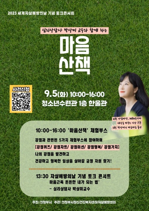 ÀÇÁ¤ºÎ½ÃÁ¤½Å°Ç°º¹Áö¼¾ÅÍ ºÎ¼³ Àڻ쿹¹æ¼¾ÅÍ´Â »ý¸íÀÇ ¼ÒÁßÇÔ°ú Àڻ칮Á¦ÀÇ ½É°¢¼ºÀ» ³Î¸® ¾Ë¸®±â À§ÇØ Á¦Á¤µÈ 9¿ù 10ÀÏ, ¼¼°è ÀÚ»ì ¿¹¹æÀÇ ³¯À» ¸ÂÀÌÇÏ¿© ¸Å³â ÀÚ»ì ¿¹¹æ ±â³äÇà»ç¸¦ ÁøÇàÇϰí ÀÖ´Ù.