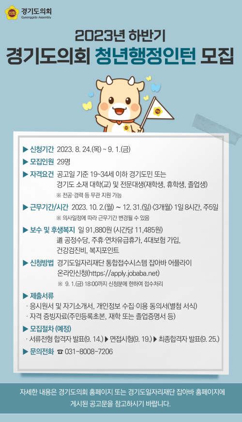 °æ±âµµÀÇȸ¿¡¼´Â ¿Ã »ó¹Ý±â 10¸íÀÇ Ã»³âÇàÁ¤ÀÎÅÏ ¼±¹ßÀ» ½ÃÀÛÀ¸·Î ÇϹݱâ 29¸íÀ» ¼±¹ß, ±Ý³âµµ´Â ÃÑ 39¸íÀ» ¸ðÁýÇÏ°Ô µÈ´Ù. û³âÇàÁ¤ÀÎÅÏÀº ±Ù¹«±â°£ µ¿¾È ½Ç¹«ºÎ¼¿¡ ¹èÄ¡µÇ¾î ºÎ¼º° ´ÜÀ§»ç¹«, Á¤Ã¥ÀÚ·á ¼öÁý·Á¶»ç·ºÐ¼® ¹× ¿¬±¸È°µ¿ Áö¿ø µîÀÇ ¾÷¹«¸¦ ÇÏ°Ô µÇ°í, µµÁ¤ ¹× ÀÇÁ¤È°µ¿ÀÇ ÀÌÇØµµ Á¦°í¸¦ À§ÇÏ¿© °æ±âµµÀÇȸ¿¡¼ ÁÖ°üÇÏ´Â °¢Á¾ ±³À° ¹× Åä·Ðȸ µî¿¡ Âü¿©ÇÒ ±âȸ°¡ ÁÖ¾îÁø´Ù.
