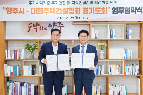 ¾çÁÖ½Ã(½ÃÀå °¼öÇö)°¡ Áö³ 28ÀÏ ÁÖ°ÅÃë¾à°èÃþÀÇ ÁְžÈÁ¤À» µµ¸ðÇϰí Áö¿ª°Ç¼³»ê¾÷ Ȱ¼ºÈ¸¦ À§ÇØ ´ëÇÑÁÖÅðǼ³Çùȸ °æ±âµµÈ¸(ȸÀå ÁöÀç±â)¿Í ¾÷¹«Çù¾àÀ» ü°áÇß´Ù.