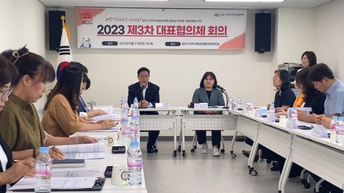 ¾çÁÖ½ÃÁö¿ª»çȸº¸ÀåÇùÀÇü(°øµ¿À§¿øÀå °¼öÇö·Ã¤Á¤¼±)´Â Áö³ 8¿ù 31ÀÏ 2023³â Á¦3Â÷ ´ëÇ¥ÇùÀÇü ȸÀǸ¦ °³È¸ÇÏ¿´´Ù. ¾çÁÖ½ÃÁö¿ª»çȸº¸ÀåÇùÀÇü °ø°øÀ§¿øÀåÀÎ °¼öÇö ¾çÁÖ½ÃÀå°ú °øµ¿À§¿øÀåÀΠäÁ¤¼± ¿ÁÁ¤Á¾ÇÕ»çȸº¹Áö°ü °üÀåÀ» ºñ·ÔÇÏ¿© ´ëÇ¥ÇùÀÇüÀÇ ´ç¿¬Á÷ À§¿ø 10¸í, À§ÃËÁ÷ À§¿ø 15¸í °¡¿îµ¥ ÃÑ 18¸íÀÌ Âü¼®ÇÏ¿´´Ù.