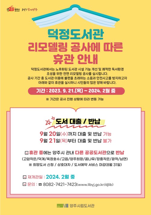 ´öÁ¤µµ¼°üÀº Áö³ 1994³â °³°üµÈ ¾çÁֽà ÃÖÃÊ °ø°øµµ¼°üÀ¸·Î ÇöÀç±îÁö ³²³à³ë¼Ò Æí¾ÈÇÑ ºÐÀ§±â¿¡¼ µ¶¼¿Í ¹®ÈÇÁ·Î±×·¥ Á¢ÇÒ ¼ö ÀÖ´Â °ø°£À» Á¦°øÇØ ¸¹Àº ½Ã¹Î¿¡°Ô »ç¶ûÀ» ¹Þ¾Æ¿Ô´Ù.