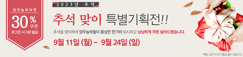 ½Ã¿¡ µû¸£¸é ¿À´Â 24ÀϱîÁö ‘¾çÁÖ³óºÎ¸¶ÄÏ’¿¡¼ ÆÇ¸ÅÇÏ´Â ¸ðµç »óǰÀ» 30% ÇÒÀÎÇÏ¿© ±¸¸ÅÇÒ ¼ö ÀÖ´Â ÄíÆùÀ» Á¦°øÇÑ´Ù.