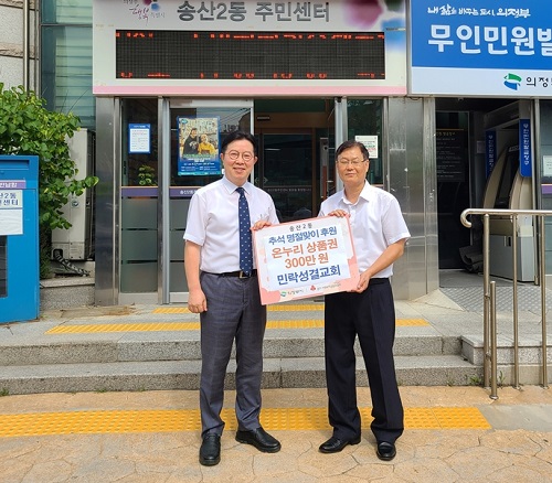 ÀÇÁ¤ºÎ½Ã ¼Û»ê2µ¿Áֹμ¾ÅÍ(µ¿Àå ÀÌÁ¾ÀÏ)´Â 9¿ù 12ÀÏ ¹Î¶ô¼º°á±³È¸(´ãÀÓ¸ñ»ç ·ù¼º¿Â)¿¡¼ Ãß¼®À» ¸Â¾Æ °æÁ¦ÀûÀ¸·Î ¾î·Á¿î ÀÌ¿ôµéÀ» À§ÇÑ ¿Â´©¸®»óǰ±Ç 300¸¸ ¿øÀ» ±âºÎÇß´Ù°í ¹àÇû´Ù.