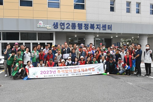 µ¿µÎõ½Ã »ý¿¬2µ¿ ÇàÁ¤º¹Áö¼¾ÅÍ(µ¿Àå ÀÌ´ö¸¸)´Â 13ÀÏ Ãß¼®À» ¸ÂÀÌÇÏ¿© »çȸ´Üü¿ø ¹× Á÷¿ø 80¿© ¸íÀÌ Âü¿©ÇÑ °¡¿îµ¥ °ü³» ȯ°æÁ¤È ¹× Á¦ÃÊÀÛ¾÷À» ½Ç½ÃÇß´Ù°í ¹àÇû´Ù.