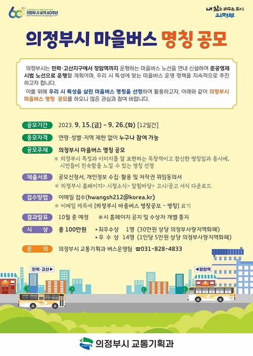 ÀÇÁ¤ºÎ½Ã(½ÃÀå ±èµ¿±Ù)´Â ÇâÈÄ ¸¶À»¹ö½º Áذø¿µÁ¦ ³ë¼±¿¡ Ȱ¿ëµÉ ÀÇÁ¤ºÎ ¸¶À»¹ö½ºÀÇ »õ·Î¿î ¸íĪÀ» 9¿ù 15ÀϺÎÅÍ 26ÀϱîÁö °ø¸ðÇÑ´Ù.