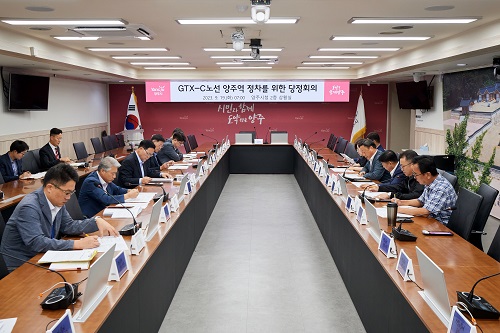 ¾çÁÖ½Ã(½ÃÀå °¼öÇö)´Â Áö³ 19ÀÏ ½Ãû 2Ãþ »óȲ½Ç¿¡¼ GTX-C ³ë¼± ¾çÁÖ¿ª Ãß°¡ Á¤Â÷¸¦ À§ÇÑ °£´ãȸ¸¦ ÁøÇàÇϰí Àû±ØÀûÀÎ ´ëó¿¡ ³ª¼¹´Ù.