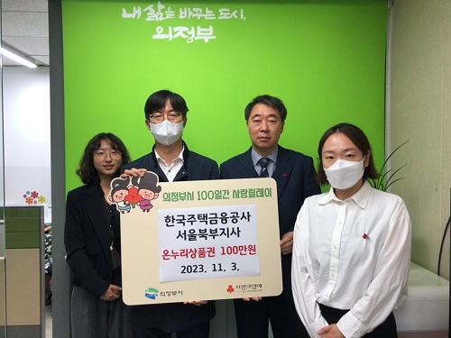 ÀÇÁ¤ºÎ½Ã(½ÃÀå ±èµ¿±Ù)´Â 11¿ù 3ÀÏ Çѱ¹ÁÖÅñÝÀ¶°ø»ç ¼¿ïºÏºÎÁö»ç(Áö»çÀå ·ù¼öº¹)°¡ ‘100Àϰ£ »ç¶û¸±·¹ÀÌ ¹èÅÏ ÀÕ±â’ⱸ¿¡ ¿Â´©¸® »óǰ±Ç 100¸¸ ¿øÀ» ±âºÎÇß´Ù°í ¹àÇû´Ù.