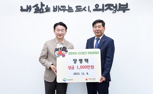 ÀÇÁ¤ºÎ½Ã(½ÃÀå ±èµ¿±Ù)´Â 11¿ù 8ÀÏ ¢ß¼¼Ã¢°Ç¼³‧¢ß¿¡½º¾¾°Ç¼³ ¾çº´Åà ´ëÇ¥°¡ Àú¼ÒµæÃþÀ» À§ÇÑ ¼º±Ý 1õ¸¸ ¿øÀ» Àü´ÞÇß´Ù°í ¹àÇû´Ù.