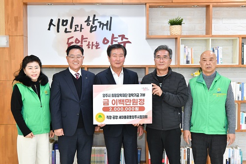 Àç´Ü¹ýÀÎ ¾çÁֽà Èñ¸ÁÀåÇÐÀç´Ü(ÀÌ»çÀå ÀÌÁø±Ô)Àº Áö³ 13ÀÏ Á÷Àå·°øÀå »õ¸¶À»¿îµ¿ ¾çÁÖ½ÃÇùÀÇȸ(ȸÀå ¿À¼ö¿µ)¿¡¼ 200¸¸¿øÀ» ±âŹÇß´Ù°í ¹àÇû´Ù.