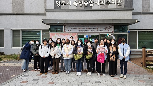 ¼Á¤´ëÇб³(ÃÑÀå ¾ç¿µÈñ)´Â Áö³ 15ÀÏ ¾çÁֽà ¿ÁÁ¤Á¾ÇÕ»çȸº¹Áö°ü¿¡¼ 2023³â ã¾Æ°¡´Â ¹Ý·Á·Îº¿ Áö¿ø ¼ºñ½º¸¦ ½Ç½ÃÇÏ¿´´Ù. ã¾Æ°¡´Â ¹Ý·Á·Îº¿ Áö¿ø ¼ºñ½º¿¡´Â ¼Á¤´ëÇб³ ´ë¿ÜÇù·Â°úÀå ÁøÁøÈñ ±³¼ö, °£È£Çаú ±è±âÀº ÇаúÀå, ¾çÁֽà ¿ÁÁ¤Á¾ÇÕ»çȸº¹Áö°ü °¼±¿ì ÆÀÀåÀ» ºñ·ÔÇÏ¿© ¼Á¤´ëÇб³ °£È£Çаú Çлý 20¸íÀÌ Âü¿©ÇÏ¿´´Ù.