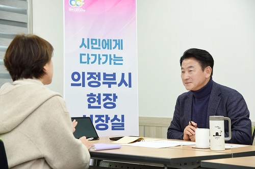±èµ¿±Ù ÀÇÁ¤ºÎ½ÃÀåÀÌ 11¿ù 17ÀÏ ÀÇÁ¤ºÎ½ÃÆò»ýÇнÀ¿ø¿¡¼ ‘ÇöÀå½ÃÀå½Ç’À» ¿°í ½Ã¹ÎµéÀÇ ¸ñ¼Ò¸®¿¡ ±Í¸¦ ±â¿ï¿´´Ù.