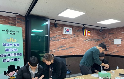 ÀÇÁ¤ºÎ½Ã ½Å°î1µ¿ÇàÁ¤º¹Áö¼¾ÅÍ´Â 11¿ù 22ÀÏ µ¿±¹´ëÇб³»ç¹ü´ëÇкμӿµ¼®°íµîÇб³(ÀÌÇÏ ¿µ¼®°í)¸¦ ¹æ¹®ÇØ ‘ã¾Æ°¡´Â ½Å±Ô Áֹεî·ÏÁõ ¹ß±Þ ¼ºñ½º’¸¦ ½ÃÇàÇß´Ù.
