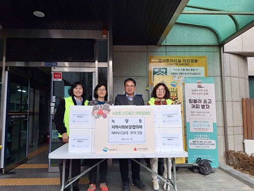 ÀÇÁ¤ºÎ½Ã ³ì¾çµ¿Áֹμ¾ÅÍ(µ¿Àå ÃÖ±¤±Ô)´Â 11¿ù 23ÀÏ ³ì¾çµ¿ Áö¿ª»çȸº¸ÀåÇùÀÇü(À§¿øÀå Á¤¿¬¼÷)°¡ ¾î·Á¿î ÀÌ¿ôÀ» À§ÇØ ÇØÇǹڽº(±èÄ¡) 20»óÀÚ¸¦ º¹Áö »ç°¢Áö´ë °¡±¸¿¡ Àü´ÞÇß´Ù°í ¹àÇû´Ù.