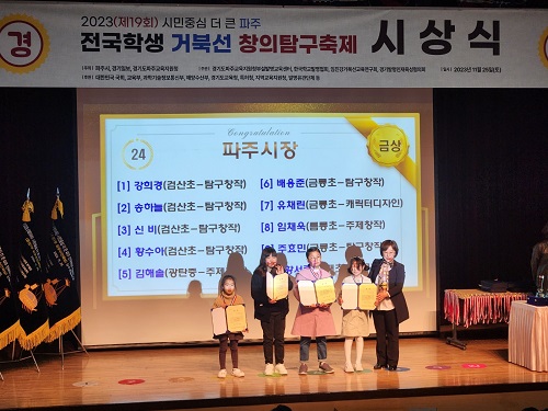»ó¼öÃʵîÇб³(±³Àå ¿Á¾ç·Ê)´Â Áö³ 11¿ù 25ÀÏ ÆÄÁÖ ½Ã¹Îȸ°ü¿¡¼ °³ÃÖµÈ 2023 Á¦19ȸ Àü±¹Çлý°ÅºÏ¼±Ã¢ÀÇŽ±¸ÃàÁ¦ ½Ã»ó½Ä¿¡¼ ÃÖ¿ì¼öÇб³ ±¹È¸ÀÇÀå»óÀ» ºñ·ÔÇÏ¿© ±Ý»ó 13¸í, Àº»ó 11¸í, µ¿»ó 33¸í, Àå·Á»ó 25¸íÀ» ¼ö»óÇÏ¿´´Ù.