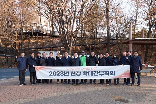 °¼öÇö ¾çÁÖ½ÃÀåÀÌ 28ÀÏ ¿ÀÀü ‘Çϴù° ±Ù¸°°ø¿ø’¿¡¼ ÁøÇà ÁßÀÎ ‘¹«Àå¾Ö Èú¸µ³ª´®±æ Á¶¼º »ç¾÷’¿¡ ´ëÇÑ ÃßÁø »óȲ Á¡°ËÀ» À§ÇÑ ÇöÀå °£ºÎȸÀǸ¦ °³ÃÖÇß´Ù.