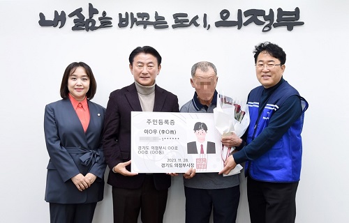 ÀÇÁ¤ºÎ½Ã(½ÃÀå ±èµ¿±Ù)´Â 11¿ù 28ÀÏ ½ÃÀå½Ç¿¡¼ À̸ð(57)¾¾¿¡ ´ëÇÑ ‘ºÎȰ Áֹεî·ÏÁõ Àü´Þ½Ä’À» ÁøÇàÇß´Ù.