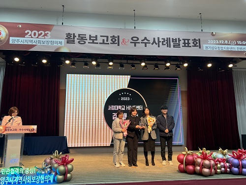 °æ±â¼¶À¯Á¾ÇÕÁö¿ø¼¾ÅÍ¿¡¼ ¿¸° 2023 ¾çÁÖ½ÃÁö¿ª»çȸº¸ÀåÇùÀÇü Ȱµ¿º¸°íȸ ¹× ¿ì¼ö»ç·Ê¹ßǥȸ´Â ÇÑ ÇØ µ¿¾È ¹Î°£°ú °ø°øÀÌ ¼·Î Çù·ÂÇØ »çȸ¾ÈÀü¸ÁÀ» ±¸ÃàÇÑ ¼º°ú¸¦ °øÀ¯Çϰí ÇâÈÄ Áö¿ªº¹ÁöÀÇ Áö¼Ó ¼ºÀå°ú ¹ßÀüÀ» µµ¸ðÇϰíÀÚ ¸¶·ÃµÈ ÀÚ¸®·Î, °³ÀÎÀ¯°øÀÚ Ç¥Ã¢°ú ¿ì¼ö»ç·Ê ½Ã»óÀÌ ÇÔ²² ÁøÇàµÇ¾ú´Ù.