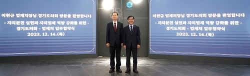 °æ±âµµÀÇȸ(ÀÇÀå ¿°Á¾Çö)¿Í ¹ýÁ¦Ã³(óÀå À̿ϱÔ)°¡ 14ÀÏ ÀÇÀå Á¢°ß½Ç¿¡¼ ‘Áö¹æºÐ±Ç ½ÇÇö’°ú ‘ÀÚÄ¡¹ýÁ¦ ¿ª·®°È’¸¦ ¸ñÇ¥·Î ¾÷¹«Çù¾àÀ» ½Ç½ÃÇß´Ù.