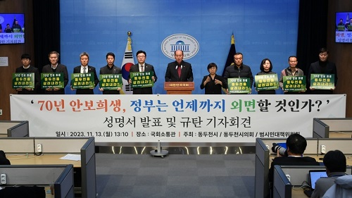 ¸¶Áö¸· 10À§´Â Á¤ºÎ°¡ 10³â Àü ¾à¼ÓÇÑ µ¿µÎõ Áö¿ø´ëÃ¥ÀÇ Á¶¼ÓÇÑ ÀÌÇàÀ» Ã˱¸ÇÏ´Â °ü·Ã Ȱµ¿ ¼Ò½ÄÀÌ ¼±Á¤µÆ´Ù. µ¿µÎõ½Ã´Â Áö³ 11¿ù 13ÀÏ, ±¹È¸ ¼ÒÅë°ü¿¡¼ ±âÀÚȸ°ßÀ» °®°í Á¤ºÎ¸¦ ÇâÇØ 70³â ¾Èº¸ Èñ»ý¿¡ ´ëÇÑ Áö¿ø´ëÃ¥À» Ã˱¸ÇÏ°í ³ª¼¹´Ù. Á¤ºÎ°¡ 2014³â Á¤ºÎ ´ëÃ¥ ±â±¸ ¼³Ä¡ µîÀ» ¾à¼ÓÇßÀ¸³ª, À̸¦ öÀúÈ÷ ¿Ü¸éÇϰí ÀÖ´Ù°í ÁÖÀåÇÏ¸é¼ µ¿µÎõ½Ã¿¡ ¾à¼ÓÇÑ °¢Á¾ Áö¿ø´ëÃ¥À» ÀÌÇàÇÏÁö ¾ÊÀ» °æ¿ì, µ¿µÎõ½Ã¹Î ¸ðµÎ°¡ ÇÔ²² ³¡±îÁö ÅõÀïÇÒ °ÍÀ̶ó°í ¹àÇû´Ù. ¶ÇÇÑ 12¿ù 13ÀÏ¿¡´Â µ¿µÎõ½Ã Áö¿ª¹ßÀü ¹ü½Ã¹Î´ëÃ¥À§¿øÈ¸¿Í ÇÔ²² ¿ë»ê ±¹¹æºÎ û»ç ¾Õ¿¡ Áý°áÇØ 10³â° ¹Ì·ïÁö°í ÀÖ´Â µ¿µÎõ Áö¿ø´ëÃ¥ ¸¶·ÃÀ» Ã˱¸ÇÏ´Â ±È±â´ëȸ¸¦ ¿¾ú´Ù.
