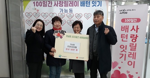 ÀÇÁ¤ºÎ½Ã °¡´Éµ¿Áֹμ¾ÅÍ(µ¿Àå Á¶ÁöÇö)´Â 12¿ù 26ÀÏ °¡´Éµ¿ ÁÖ¹ÎÀÚġȸ(ȸÀå ÀÌÈÆ¿Á)°¡ ¼º±Ý 50¸¸ ¿øÀ» ±âºÎÇÏ¸ç ‘100Àϰ£ »ç¶û¸±·¹ÀÌ ¹èÅÏ ÀձⒿ¡ µ¿ÂüÇß´Ù°í ¹àÇû´Ù.
