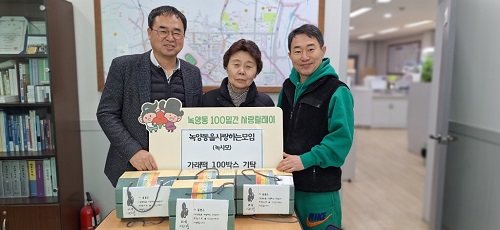 ÀÇÁ¤ºÎ½Ã ³ì¾çµ¿Áֹμ¾ÅÍ(µ¿Àå ÃÖ±¤±Ô)´Â 12¿ù 27ÀÏ ³ì¾çµ¿À» »ç¶ûÇÏ´Â ¸ðÀÓ(³ì»ç¸ð)ÀÌ ‘100Àϰ£ »ç¶û¸±·¹ÀÌ ¹èÅÏ Àձ⒠ⱸ¿¡ ÀÌ¿ô»ç¶û ¶±±¹¶± 100»óÀÚ¸¦ ±âŹÇß´Ù°í ¹àÇû´Ù.