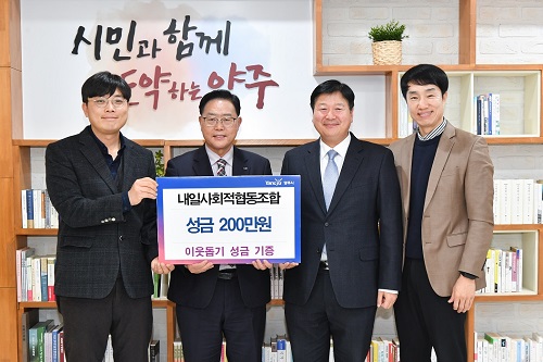 ¾çÁÖ½Ã(½ÃÀå °¼öÇö)´Â Áö³ 5ÀÏ ³»ÀÏ»çȸÀûÇùµ¿Á¶ÇÕ(ÀÌ»çÀå ¼Û¿µÁø)¿¡¼ ½ÃûÀ» ¹æ¹®ÇØ ¾çÁֽà ¾î·Á¿î ÀÌ¿ôÀ» À§ÇØ ½á´Þ¶ó¸ç ¼º±Ý 200¸¸¿øÀ» ±âºÎÇß´Ù°í ¹àÇû´Ù.