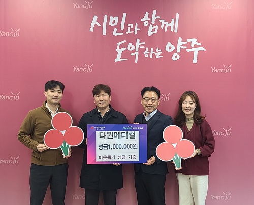 ¾çÁֽà ¿ÁÁ¤2µ¿(µ¿Àå ÀÌÀ±±Ô)ÀÌ 9ÀÏ ¿ÀÀü ´Ù¿ø¸ÞµðÄÃ(´ëÇ¥ Àӱݺó)¿¡¼ ÀÌ¿ôµ½±â ¼º±ÝÀ¸·Î 100¸¸ ¿øÀ» ±âºÎÇß´Ù°í ¹àÇû´Ù.