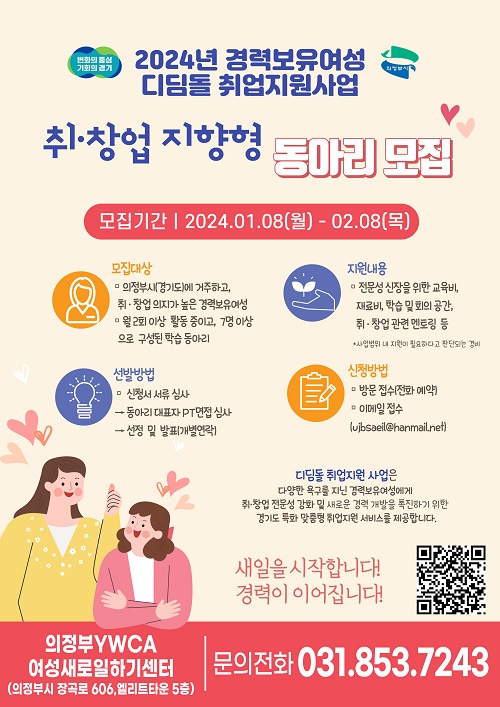 ÀÇÁ¤ºÎYWCA ¿©¼º»õ·ÎÀÏÇϱ⼾ÅÍ¿¡¼´Â °æ±âµµ¿Í ÀÇÁ¤ºÎ½ÃÀÇ Áö¿øÀ¸·Î ´Ù¾çÇÑ ¿å±¸¸¦ Áö´Ñ Áö¿ª »çȸ ¿©¼ºµé¿¡°Ô Ãë·Ã¢¾÷ Àü¹®¼º °È ¹× °æ·Â °³¹ßÀ» Áö¿øÇϱâ À§ÇÑ ÈÆ·ÃÇü »ç¾÷ °øµ¿Ã¼(Áö¿ª ³» ÇнÀ µ¿¾Æ¸®)¸¦ ¾ç¼ºÇϰí, Ãë·Ã¢¾÷ ¿¬°è¸¦ ÃËÁøÇÏ´Â °æ±âµµ Æ¯È ¸ÂÃãÇü Ãë¾÷ Áö¿ø ¼ºñ½ºÀÎ ‘2024³â °æ·Âº¸À¯¿©¼º µðµõµ¹ Ãë¾÷Áö¿ø »ç¾÷’À» ÁøÇàÇϰí ÀÖ´Ù.