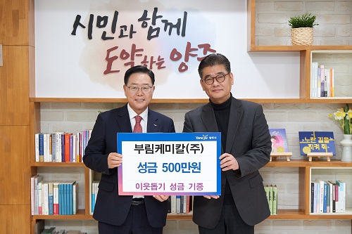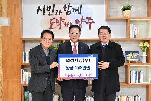 ¾çÁÖ½Ã(½ÃÀå °¼öÇö)´Â Áö³ 17ÀÏ ´öÁ¤È¯°æ(ÁÖ)(´ëÇ¥ °í±¤¿ë·°íÀ±Èñ)°ú ºÎ¸²ÄɹÌÄ®(ÁÖ)(´ëÇ¥ ¹éÀç¿ì)¿¡¼ ½ÃûÀ» ¹æ¹®ÇØ ¾çÁֽà ¾î·Á¿î ÀÌ¿ôÀ» À§ÇØ ½á´Þ¶ó¸ç °¢°¢ ¼º±Ý 248¸¸¿ø°ú 500¸¸¿øÀ» ±âºÎÇß´Ù°í ¹àÇû´Ù.