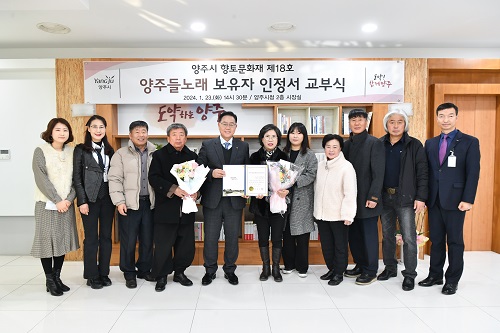 °¼öÇö ¾çÁÖ½ÃÀåÀº“¿ì¸® Áö¿ªÀÇ ¼ÒÁßÇÑ ¹«ÇüÀ¯»êÀ» ¹ß±¼Çϰí ÁöÄѿ ¹ÚÁ¤È º¸À¯ÀÚ´Ô²² ÃàÇÏ¿Í °¨»çÀÇ ¸»¾¸À» ÀüÇÑ´Ù”¸ç “¿ª»ç ¹®Èµµ½ÃÀÎ ¾çÁÖ½ÃÀÇ À§»óÀ» ³ôÀÎ ¹®ÈÀ¯»êÀ» º¸Á¸Çϰí Ȱ¿ëÇÏ´Â µ¥ ´õ¿í ³ë·ÂÀ» ±â¿ïÀ̰ڴٔ°í ÀüÇß´Ù.