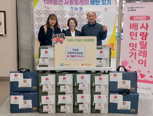 ÀÇÁ¤ºÎ½Ã °¡´Éµ¿Áֹμ¾ÅÍ(µ¿Àå Á¶ÁöÇö)´Â 2¿ù 5ÀÏ ÀÇÁ¤ºÎ½ÅÃ̱³È¸(¸ñ»ç ¹ÚÇöÁø)°¡ Ãë¾à°èÃþÀ» À§ÇØ ¸íÀý¼±¹°¼¼Æ®(½Ä·áǰ) ¹× ±è¼¼Æ® 60°³¸¦ ±âºÎÇß´Ù°í ¹àÇû´Ù.