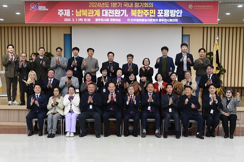 ¹ÎÁÖÆòÈÅëÀÏÀÚ¹®È¸ÀÇ µ¿µÎõ½ÃÇùÀÇȸ(ȸÀå ¹Ú»óÈï)´Â 7ÀÏ ‘³²ºÏ °ü°è ´ëÀüȯ±â, ºÏÇÑ ÁֹΠÆ÷¿ë ¹æ¾È’À» ÁÖÁ¦·Î 1ºÐ±â Á¤±âȸÀǸ¦ °³ÃÖÇß´Ù.