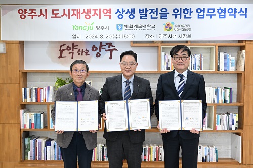 À̹ø Çù¾àÀº Áö³ 29ÀÏ ¾çÁÖ½Ã, ´öÁ¤¸¶À»°ü¸®»çȸÀûÇùµ¿Á¶ÇÕ, ¼Á¤´ëÇб³¿Í °¡Áø 1Â÷ Çù¾à¿¡ ÀÌÀº µÎ ¹øÂ° Çù¾àÀ¸·Î °¼öÇö ¾çÁÖ½ÃÀå, ÃÖÈ£¼º ´öÁ¤ ¸¶À»°ü¸®»çȸÀûÇùµ¿Á¶ÇÕ ÀÌ»çÀå, °í±¤¸ð ¿¹¿ø¿¹¼ú´ë ÃÑÀåÀÌ Âü¼®ÇØ Áö¿ª »ó»ýÀ» À§ÇÑ ±â°ü °£ »óÈ£ Çù·ÂÀ» ¾à¼ÓÇß´Ù.