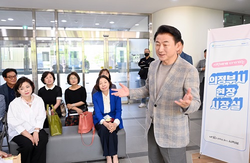 ±èµ¿±Ù ÀÇÁ¤ºÎ½ÃÀåÀÌ 5¿ù 3ÀÏ ¼Û»ê3µ¿ÇàÁ¤º¹Áö¼¾Å͸¦ ã¾Æ ‘ÇöÀå½ÃÀå½Ç’À» ¿°í ½Ã¹ÎµéÀÇ ¸ñ¼Ò¸®¿¡ ±Í¸¦ ±â¿ï¿´´Ù.