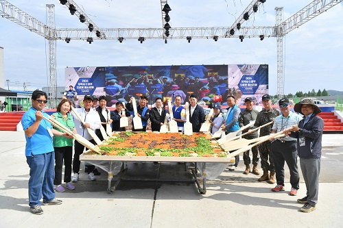 Çà»çÀå Àü¸é¿¡´Â K-2 ÀüÂ÷, ¼ö¸®¿Â Çï±â µî ¿ì¸® ±ºÀÇ ÃÖ÷´Ü ÀüÅõ Àåºñ°¡ Àü½ÃµÇ¾î ±â³ä ÃÔ¿µÀ» ÇÏ´Â °ü¶÷°´µé·Î ºÏ»õÅëÀ» ÀÌ·ðÀ¸¸ç Çà»çÀå Áß¾Ó¿¡´Â ¿ä½Ä¾÷°è¿¡¼ ÀÜ»À°¡ ±½Àº ±¤Àû¸é »ó°¡¹ø¿µÈ¸ ȸ¿øµéÀÌ ¸Ô°Å¸® ÀåÅ͸¦ ¿î¿µÇÏ¿© ¶Ù¾î³ ¸À°ú ÇÕ¸®ÀûÀÎ °¡°ÝÀ¸·Î °ü¶÷°´µéÀÇ ÀÔÀ» Áñ°Ì°Ô Çß´Ù.