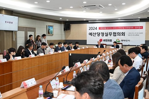 ¹ÚÇü´ö µ¿µÎõ½ÃÀå°ú ±è¼º¿ø ±¹È¸ÀÇ¿øÀÌ Áö³ 22ÀÏ µ¿µÎõ½Ãû »óȲ½Ç¿¡¼ 2024³â ¿¹»ê´çÁ¤½Ç¹«ÇùÀÇȸ¸¦ °³ÃÖÇÏ°í µ¿µÎõ½Ã ÁÖ¿ä Çö¾È »ç¾÷¿¡ ´ëÇÑ ½Å¼ÓÇÑ ÃßÁøÀ» À§ÇØ ÃÑ·ÂÀ» ´ÙÇϱâ·Î ÀǰßÀ» ¸ð¾Ò´Ù.