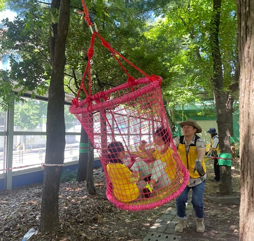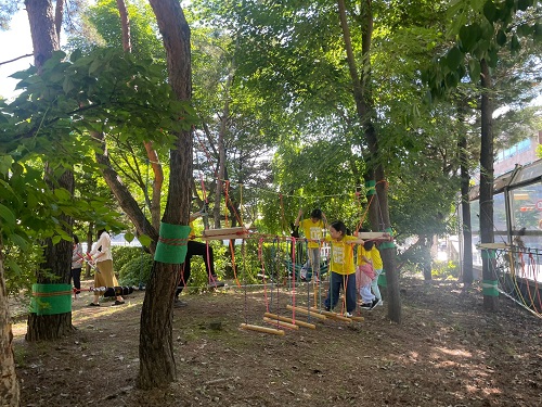 À̹ø üÇèÇнÀÀº Çб³ ½£ÀÇ ¼ö¸ñ ȯ°æÀ» ÀÌ¿ëÇÑ ÀÚ¿¬ ³îÀÌÅ͸¦ ¼³Ä¡ÇÏ¿© ¸ðÇè ¹åÁÙ ³îÀÌ ÇÁ·Î±×·¥À» ¿î¿µÇÏ¿´´Ù. Çб³ ½£¿¡ ÀÖ´Â ¿©·¯ ³ª¹«¿¡ ¹åÁÙÀ» ¿¬°áÇÏ¿© »õ·Î¿î °ø°£À¸·Î ¹Ù²ï ¸ð½ÀÀ̾ú´Ù. ÀÚÀ¯ ³îÀ̸¦ ´Ù¾çÇÏ°Ô Áñ±â¸ç Ȱµ¿À» ÅëÇØ ÇлýµéÀÌ Çб³ ½£¿¡¼ »ýÅ °¨¼ö¼ºÀ» Ű¿ì°í ¸ðÇè½ÉÀ» Ű¿ì´Â °æÇèÀ» ÇÒ ¼ö ÀÖ¾ú´Ù. ³ô°Ô ¼³Ä¡µÈ ±×¹°¿¡ ¶Ù¾î¿Ã¶ó º¸°í Èçµé°Å¸®´Â ´Ù¸®¿¡¼ ¸öÀÇ ±ÕÇüÀ» Àâ¾Æº¸¸ç ÀÚ±â½Å ü Á¶Àý ´É·ÂÀ» ½ÅÀå½ÃŲ´Ù.