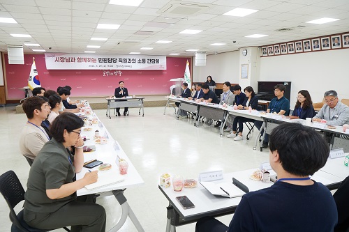 °£´ãȸ¿¡ Âü¼®ÇÑ Á÷¿øµéÀº “Æò¼Ò ¹Î¿ø ÀÀ´ë ½Ã °Þ¾ú´ø ¾Ö·Î»çÇ×°ú ¾÷¹« °íÃæ¿¡ ´ëÇØ ½ÃÀå´Ô°ú Á÷Á¢ À̾߱⸦ ³ª´ ¼ö ÀÖ´Â ¶æ±íÀº ½Ã°£À̾ú´Ù”°í ¹àÇû´Ù.