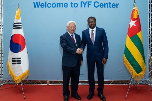 6¿ù5ÀÏ ¿ÀÀü Æ÷¸£ ³Ä½Ìº£(Faure Gnassingbe) Åä°í ´ëÅë·ÉÀÌ ¼¿ï½Ã ¼Ãʱ¸ ¾çÀ絿¿¡ À§Ä¡ÇÑ ±¹Á¦Ã»¼Ò³â¿¬ÇÕ(IYF)¼¾Å͸¦ ¹æ¹®Çß´Ù. Åä°í¿¡¼ 4Â÷·Ê IYF ¼³¸³ÀÚ ¹Ú¿Á¼ö ¸ñ»ç¸¦ ¸¸³ ³Ä½Ìº£ ´ëÅë·ÉÀº ‘ÇÑ-¾ÆÇÁ¸®Ä« Á¤»óȸÀÇ’ ¹æ¹®½Ã IYF¼¾Å͸¦ ¹æ¹®ÇÒ °ÍÀ» ¾à¼ÓÇÑ ¹Ù ÀÖ´Ù.