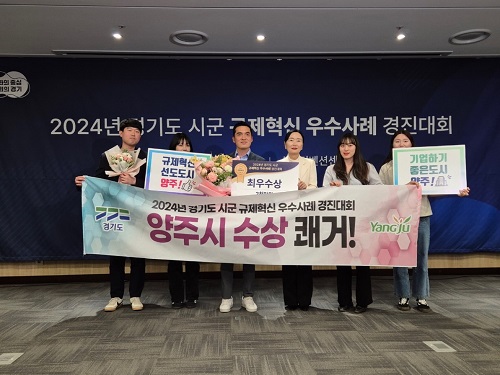 ¾çÁÖ½Ã(½ÃÀå °¼öÇö)°¡ 4ÀÏ ¿ÀÀü ¼ö¿øÄÁº¥¼Ç¼¾ÅÍ¿¡¼ °³ÃÖÇÑ ‘2024³â °æ±âµµ ½Ã±º ±ÔÁ¦Çõ½Å ¿ì¼ö»ç·Ê °æÁø´ëȸ(ÀÌÇÏ ´ëȸ)’¿¡¼ ÃÖ¿ì¼ö»óÀÇ ¿µ¿¹¸¦ ¾ÈÀ¸¸ç ±ÔÁ¦Çõ½Å ¼±µµ ÁöÀÚü·Î ÀÚ¸®¸Å±èÇß´Ù.