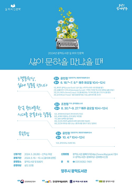 ¾çÁÖ½Ã(½ÃÀå °¼öÇö)°¡ °ü³» ±¤Àûµµ¼°ü¿¡¼ ‘»îÀÌ ¹®ÇÐÀ» ¸¸³µÀ» ¶§’¶ó´Â ÁÖÁ¦·Î ‘±æ À§ÀÇ Àι®ÇÐ’ ÇÁ·Î±×·¥À» ¿î¿µÇÑ´Ù.