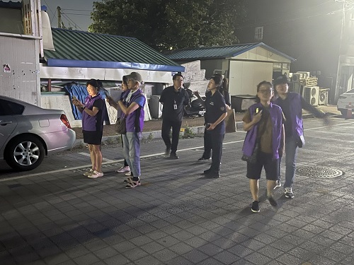 ÃÑ 13¸íÀÌ Âü¿©ÇØ °æÀüö Èï¼±¿ª 2¹ø ÃⱸºÎÅÍ ¹ú¸»¾î¸°À̰ø¿ø±îÁö 300¿©m ±¸°£¿¡¼ ÁøÇàÇß´Ù. ¾îµÓ°í ¾ÈÀü¿¡ Ãë¾àÇÑ °ñ¸ñ±æ°ú À̸鵵·Î °÷°÷À» ¸é¹ÐÈ÷ Á¡°ËÇØ ¹æ¹üCCTV, ·Î°íÁ§ÅÍ, ¾È½Éºñ»óº§, ³ë¸éµµ»ö, º¸¾Èµî ¼³Ä¡°¡ ÇÊ¿äÇÑ Àå¼Ò¸¦ ÁöµµÈÇϰí ÀǰßÀ» µî·ÏÇß´Ù.