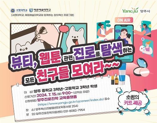 ¾çÁÖ½Ã(½ÃÀå °¼öÇö)´Â ¿À´Â 7¿ù 30ÀϺÎÅÍ °ü³» û¼Ò³âµéÀÇ ºäƼ(¸ÞÀÌÅ©¾÷, ÄÚµð µî), À¥Å÷(¹Ì¼ú, ÀÛ°¡) ºÐ¾ß Áø·Î Ž»öÀ» Áö¿øÇϱâ À§ÇØ Áö¿ª ³» ´ëÇаú ÇÔ²²ÇÏ´Â ¿©¸§¹æÇРƯ°À» °³ÃÖÇÑ´Ù°í 8ÀÏ ¹àÇû´Ù.