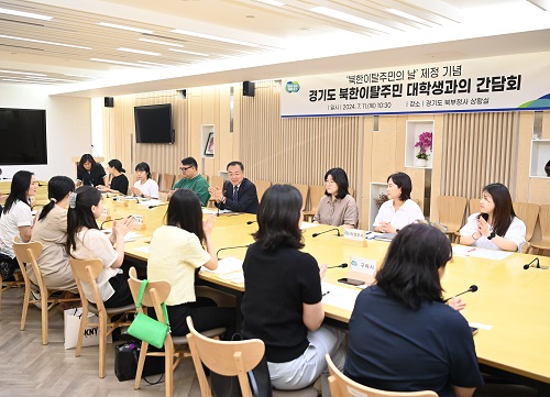 °æ±âµµ°¡ Á¦1ȸ ºÏÇÑÀÌÅ»ÁÖ¹ÎÀÇ ³¯(7¿ù 14ÀÏ)À» ¸Â¾Æ Áö³ 11ÀÏ °æ±âµµÃ» ºÏºÎû»ç¿¡¼ Å»ºÏû³â ´ëÇлýµé°úÀÇ °£´ãȸ¸¦ °³ÃÖÇß´Ù.