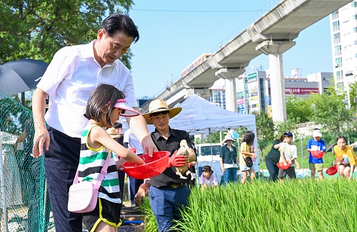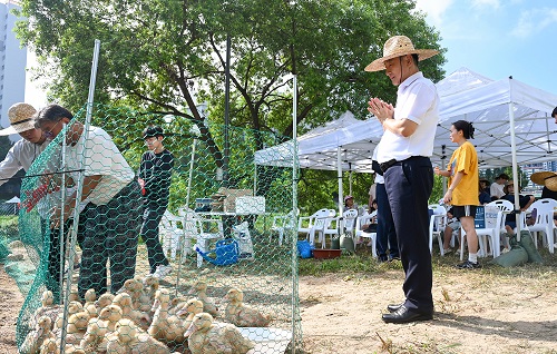 ÀÇÁ¤ºÎ½Ã(½ÃÀå ±èµ¿±Ù)´Â 8¿ù 2ÀÏ Àå¾Ïµ¿ ±¤¸í±³È¸ ÇϺΠÁß¶ûõ¿¡ Á¶¼ºµÈ º³ó»ç üÇèÀå¿¡¼ ģȯ°æ ³ó¹ýÀÇ ÀÏȯÀ¸·Î ¿À¸®¸¦ ¹æ»çÇß´Ù.